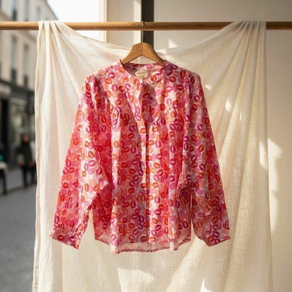 Blouse April Vintage bisous rose rouge