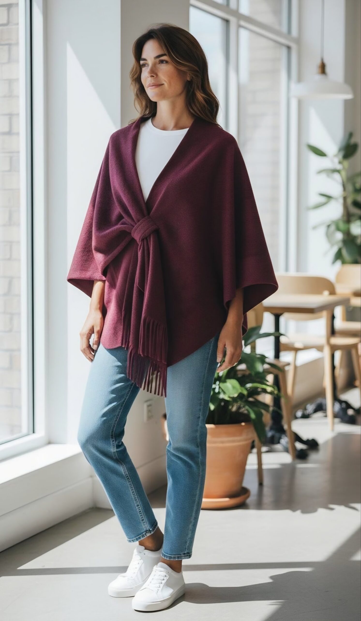 Cape réglable bordeaux poncho