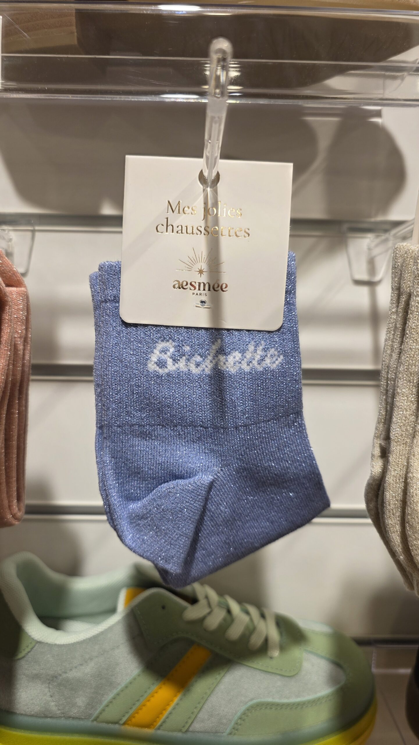 Chaussettes à paillettes bichette bleu clair