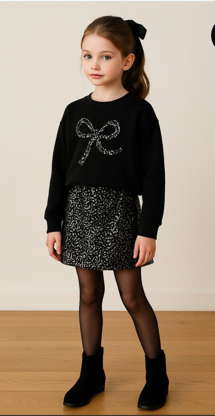 Ensemble réveillon fillette noir sequins sweat et jupe