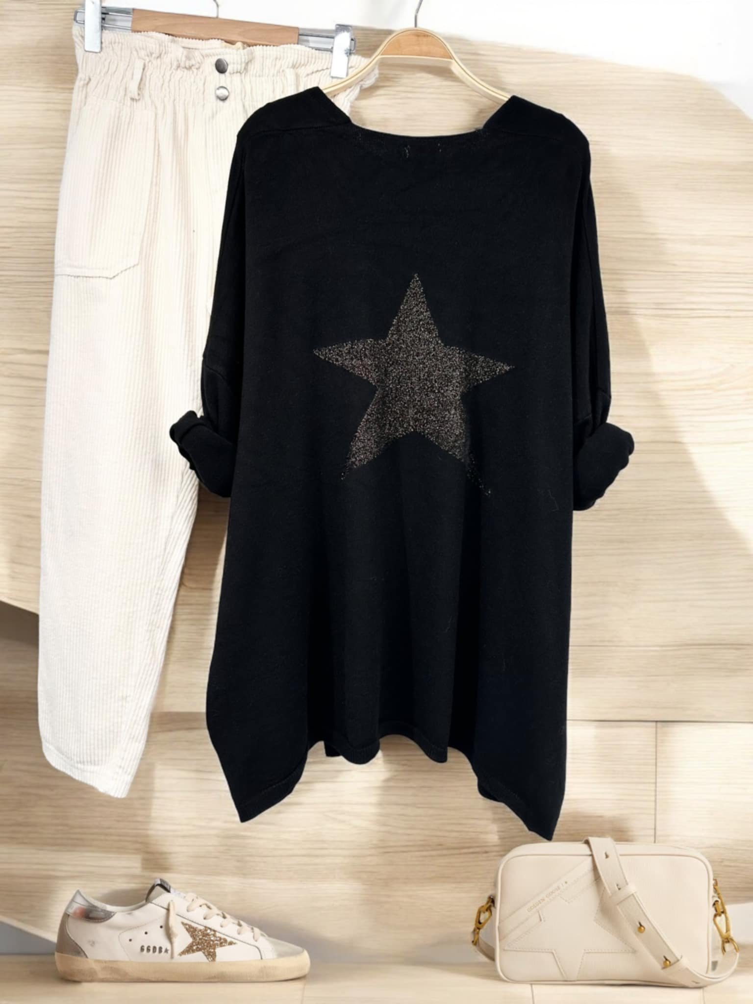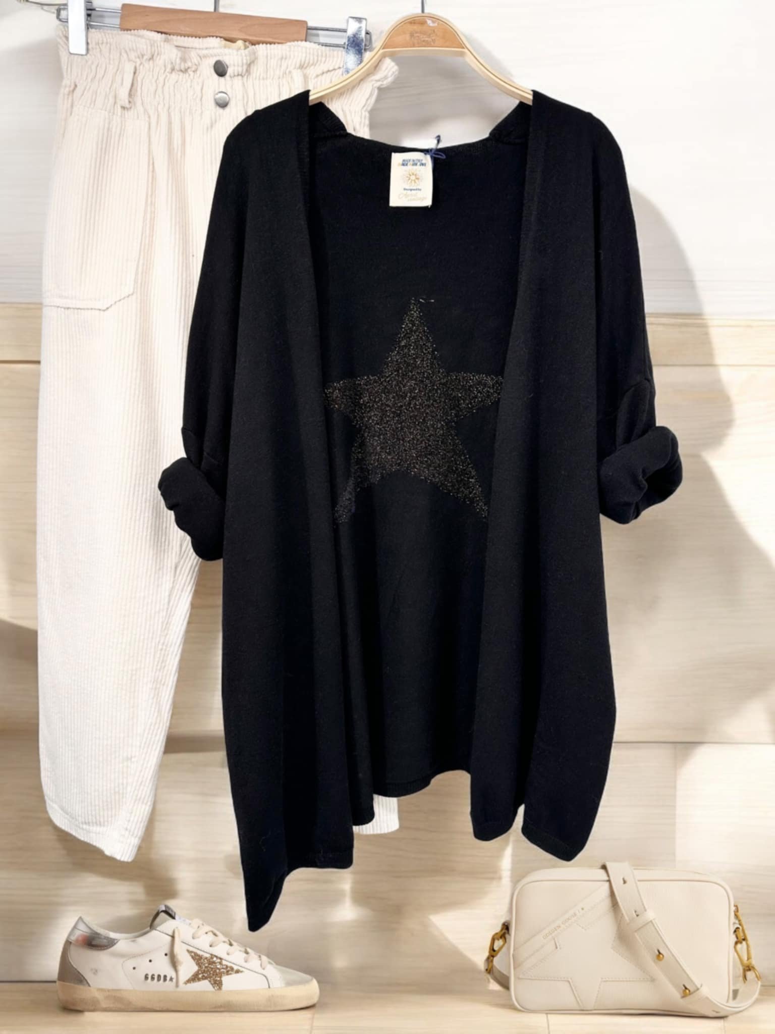 Gilet April Vintage long etoile dans le dos noir