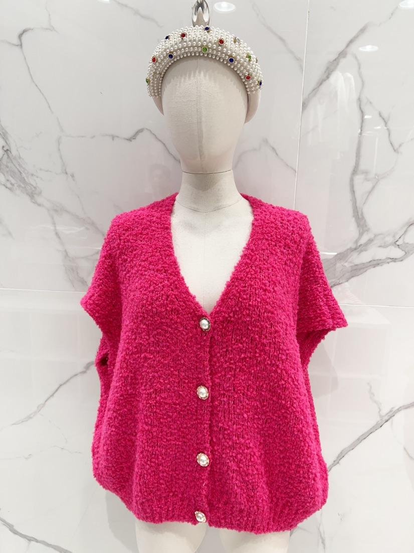 Gilet grande taille sans manches rose fushia laine