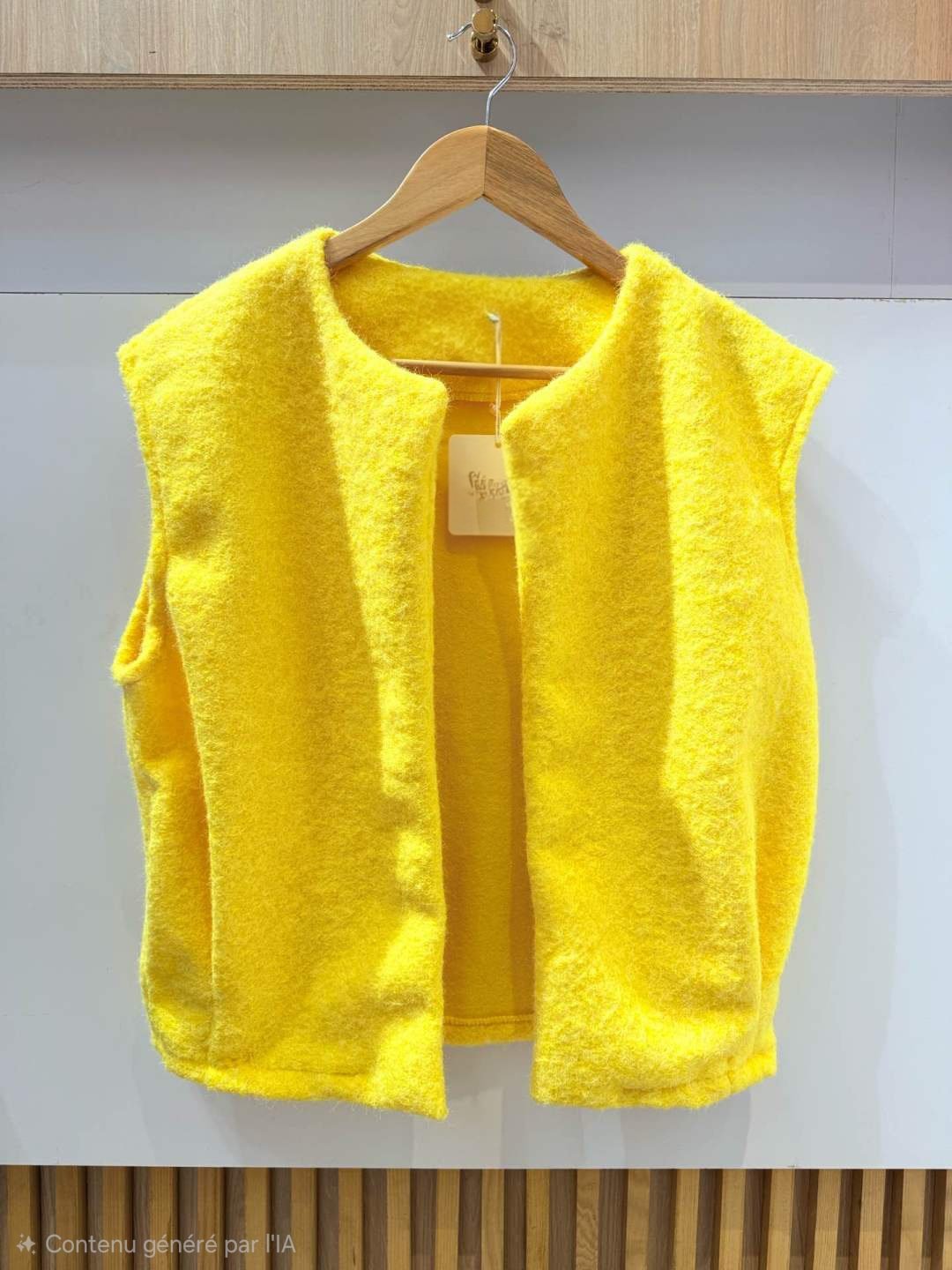 Gilet sans manche jaune style laine bouillie avec poches