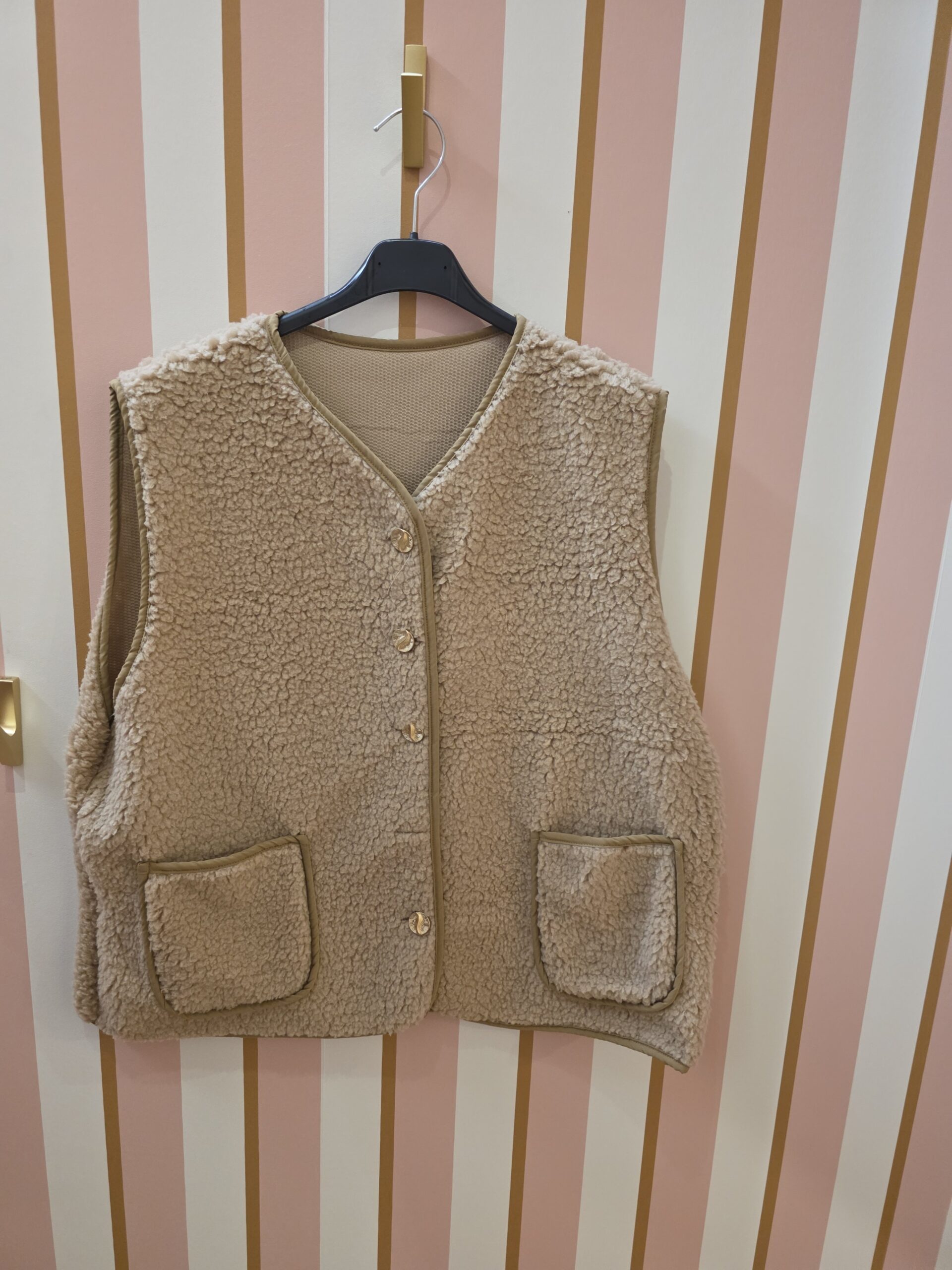 Gilet sans manches belle taille beige avec boutons