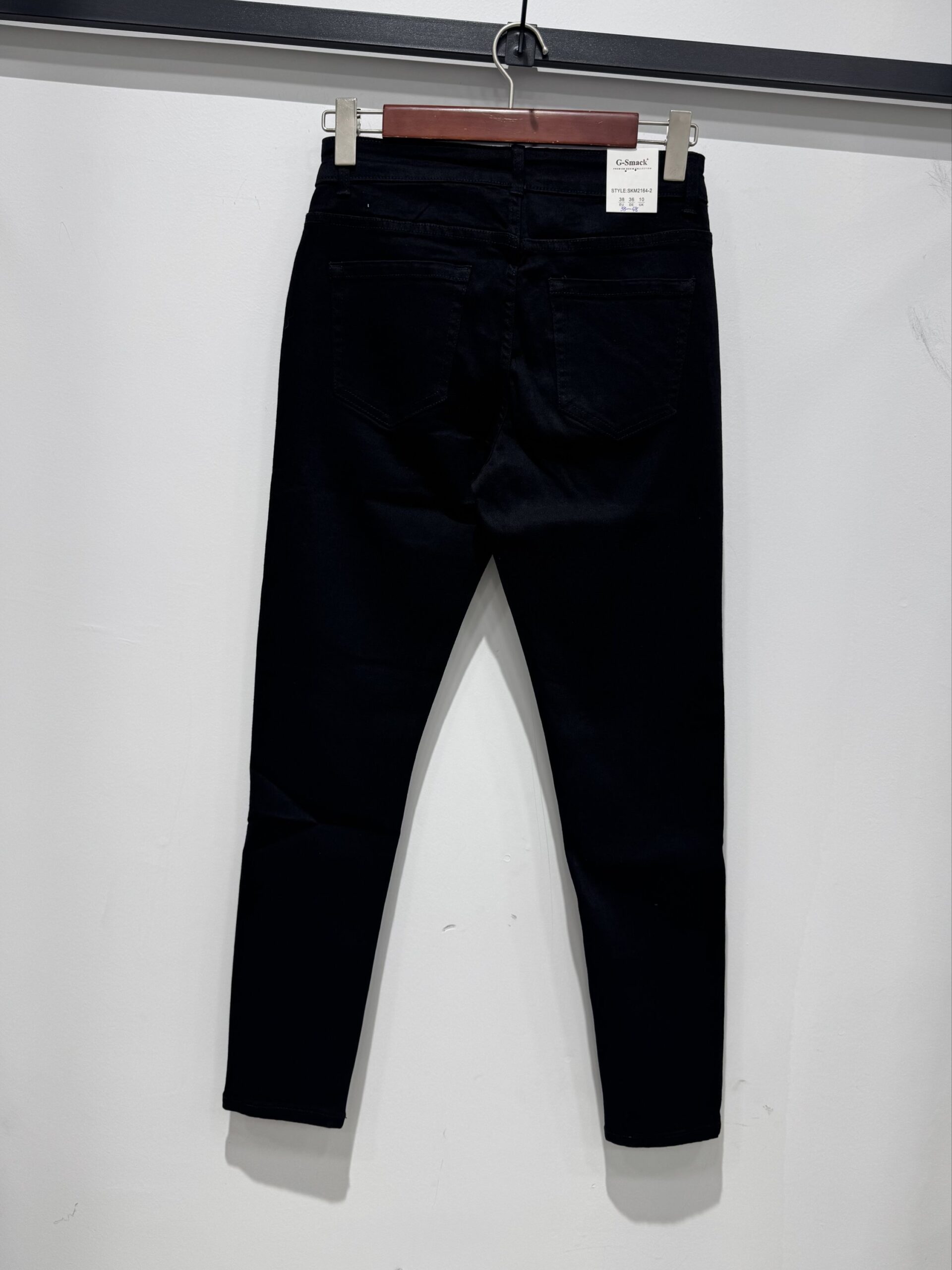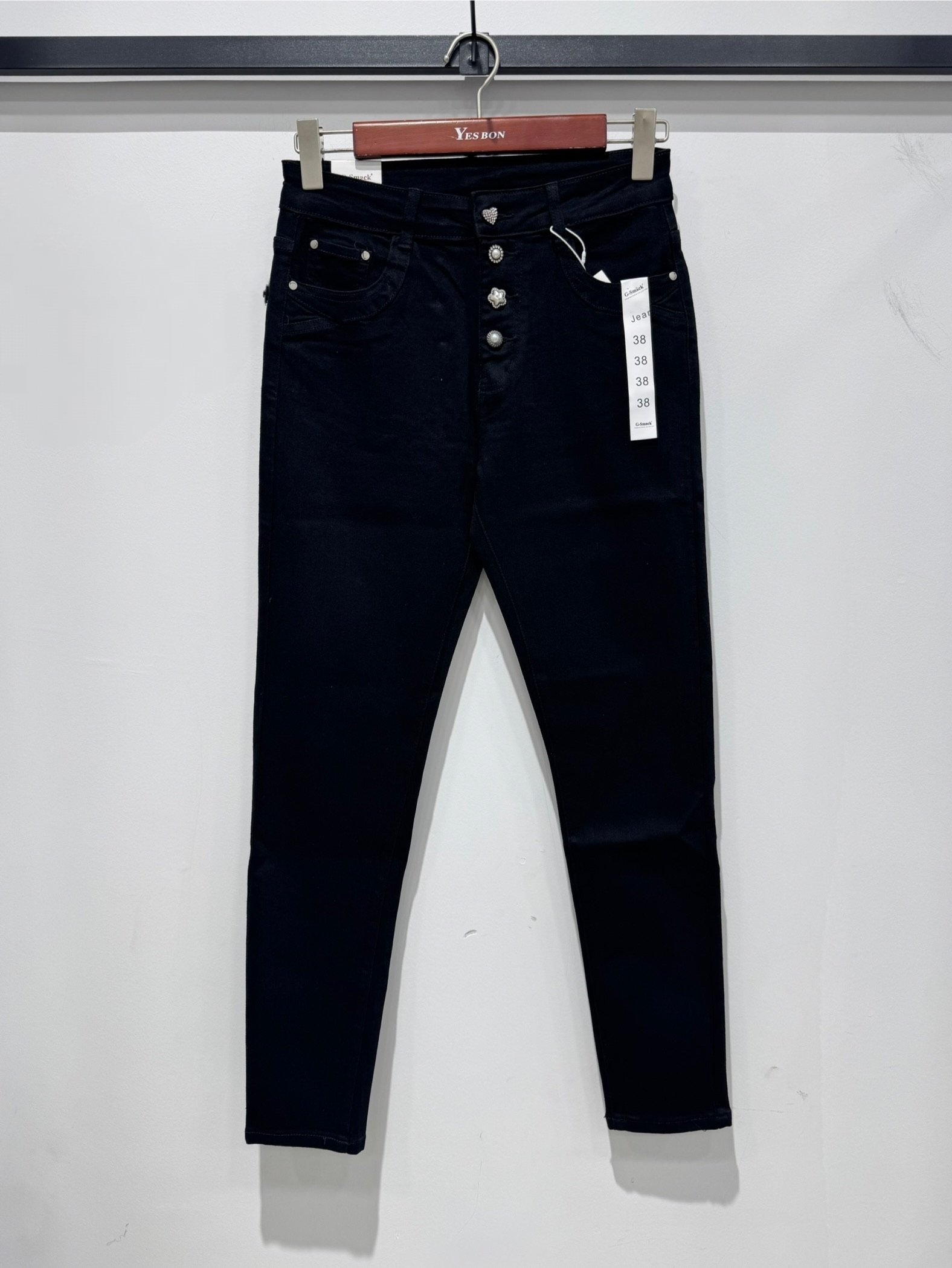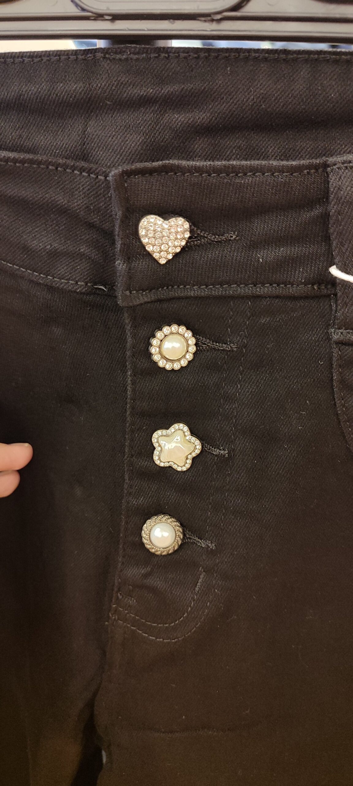 Jeans grande taille boutons décoratifs argentés et strass noir stretch