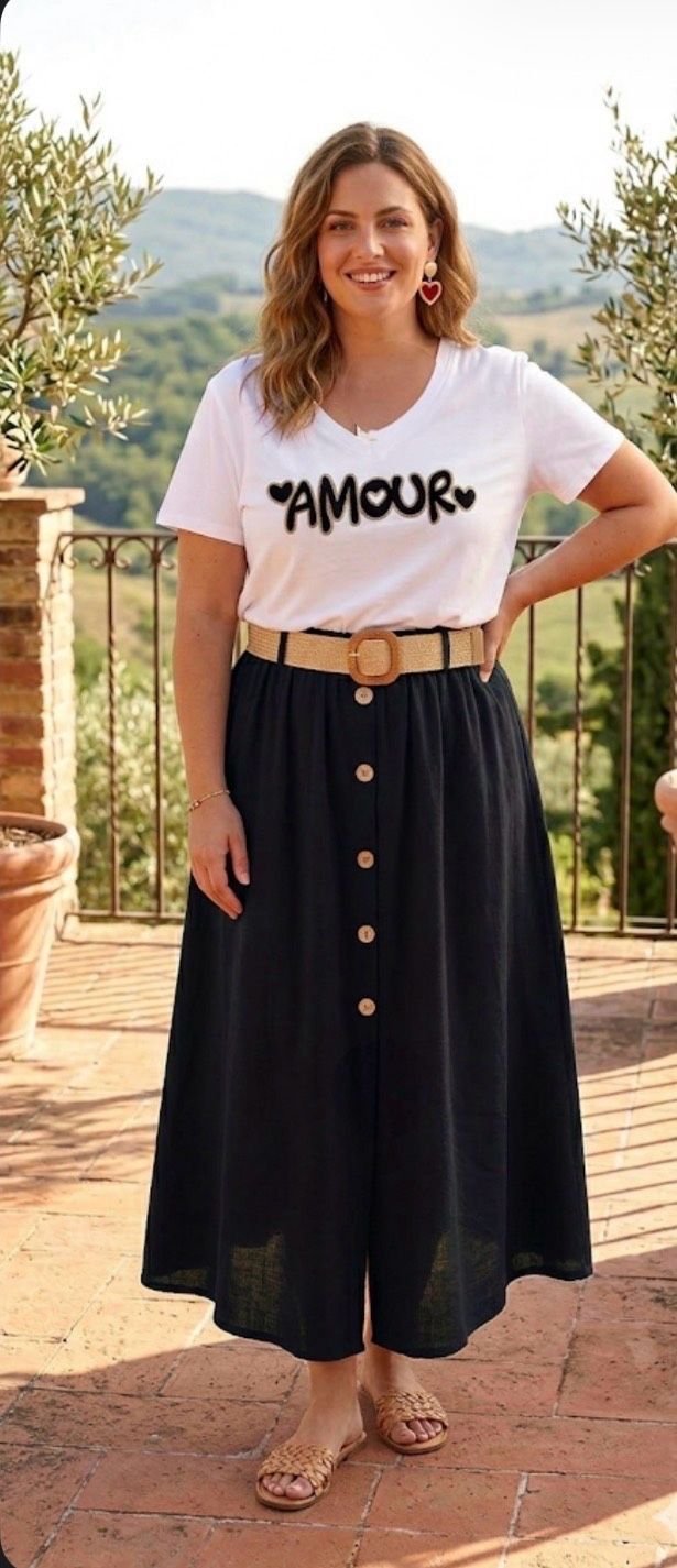 Jupe belle taille longue noir avec ceinture et boutons