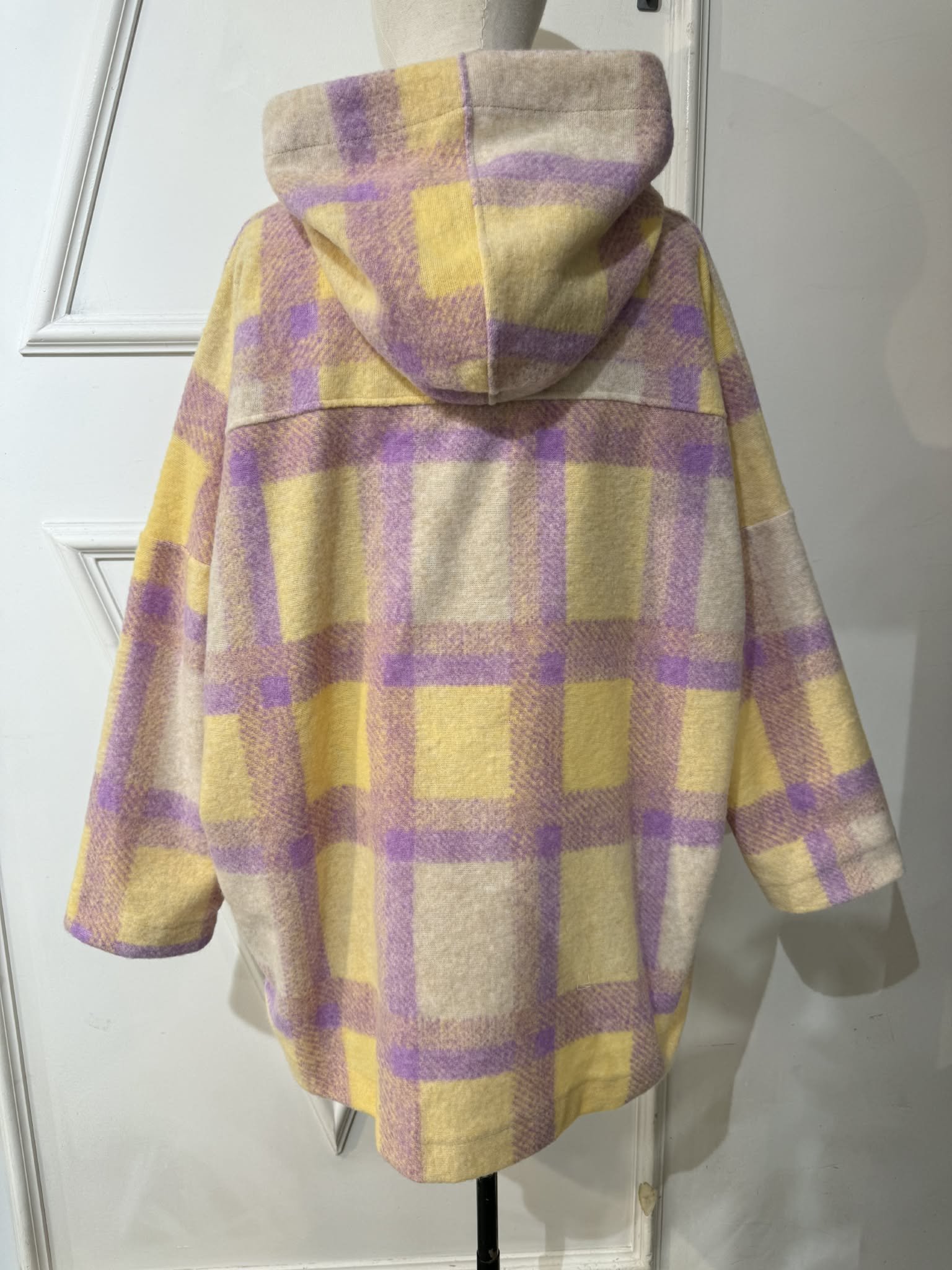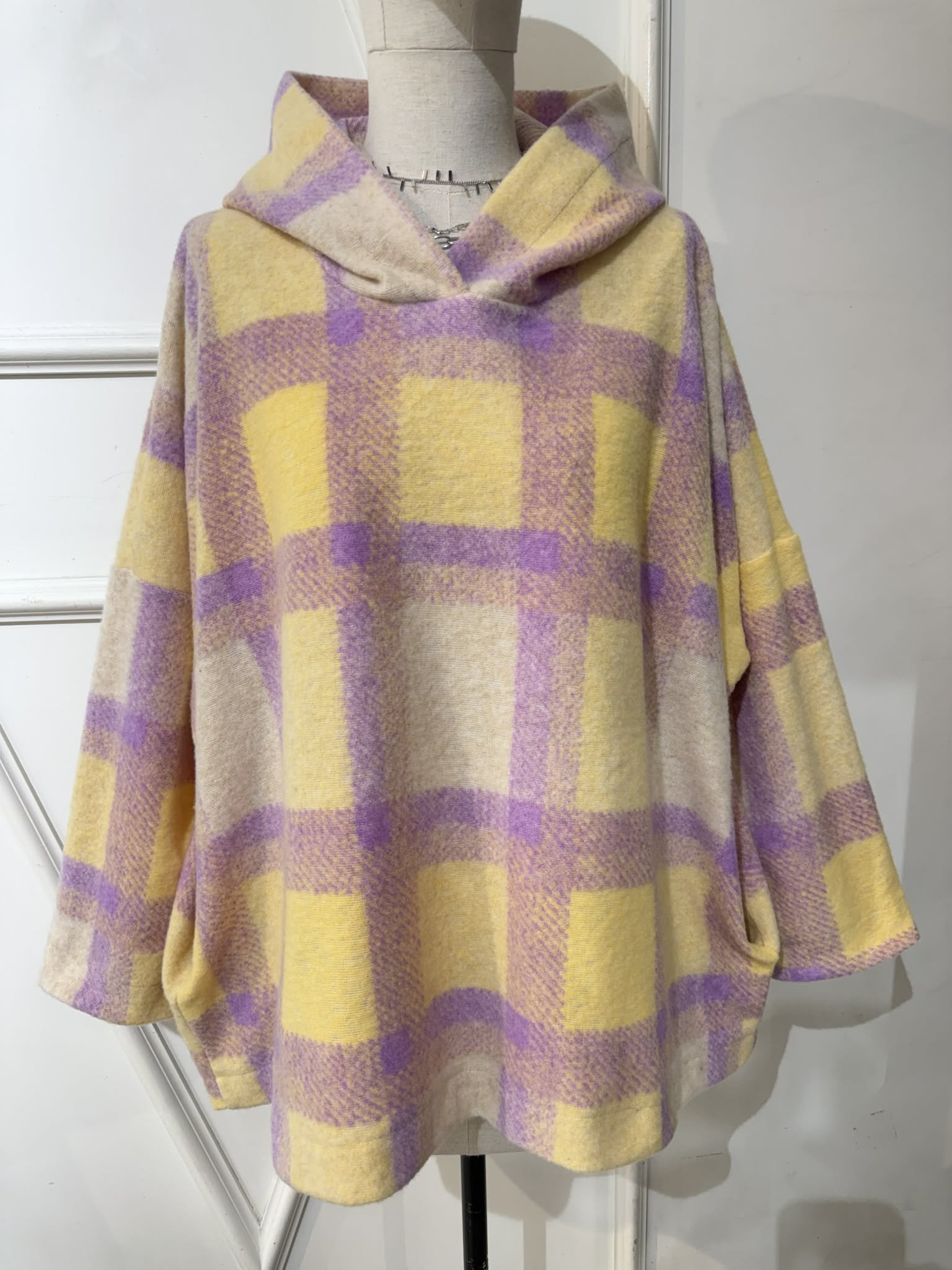 Maxi sweat April Vintage carreaux et capuche mauve et jaune oversize