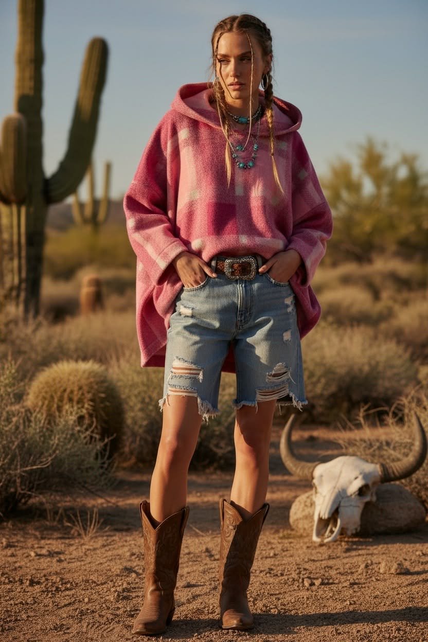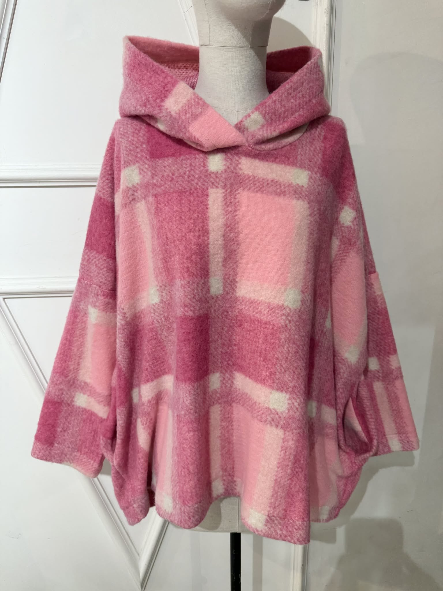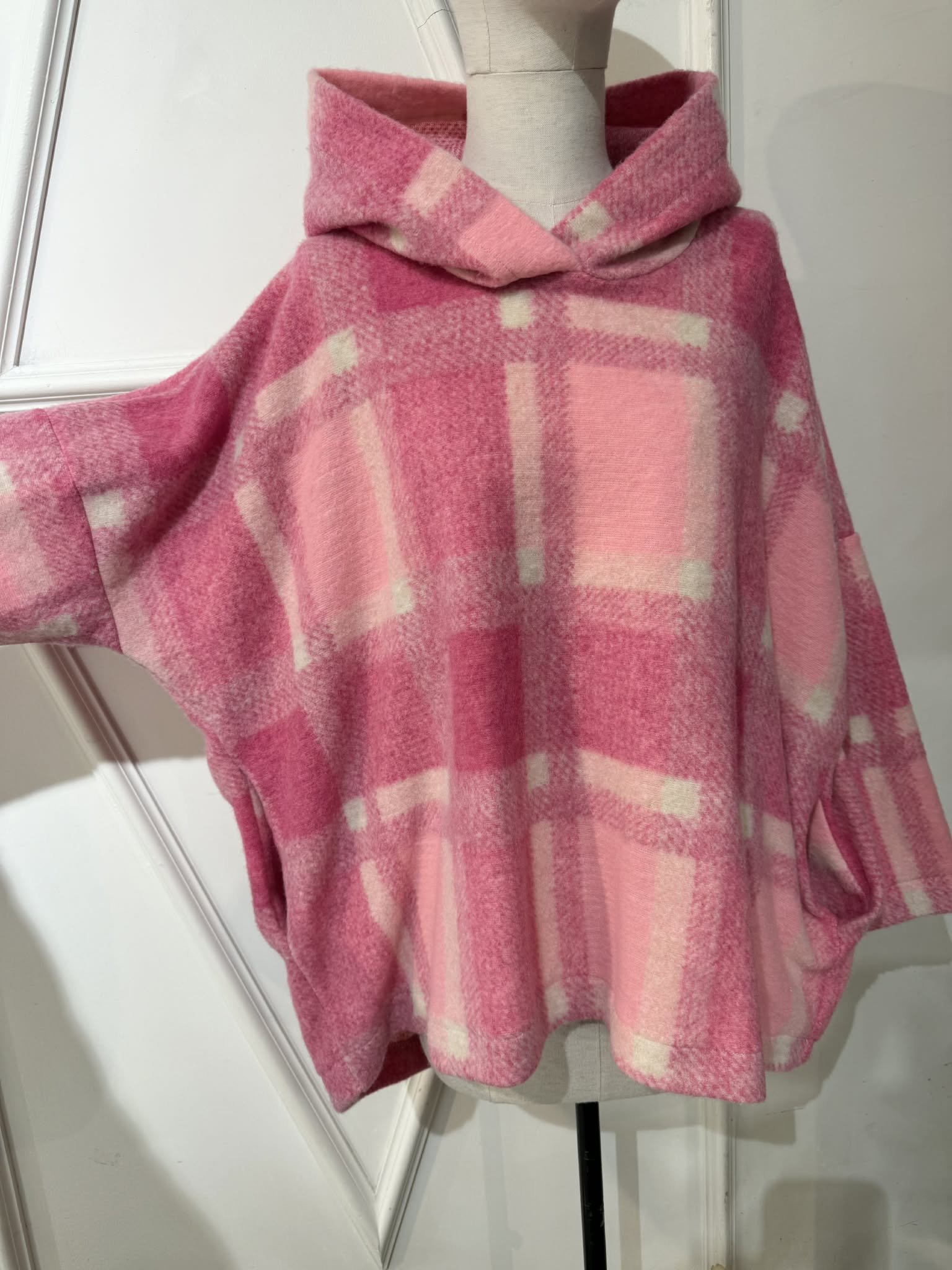 Maxi sweat April Vintage carreaux et capuche rose oversize