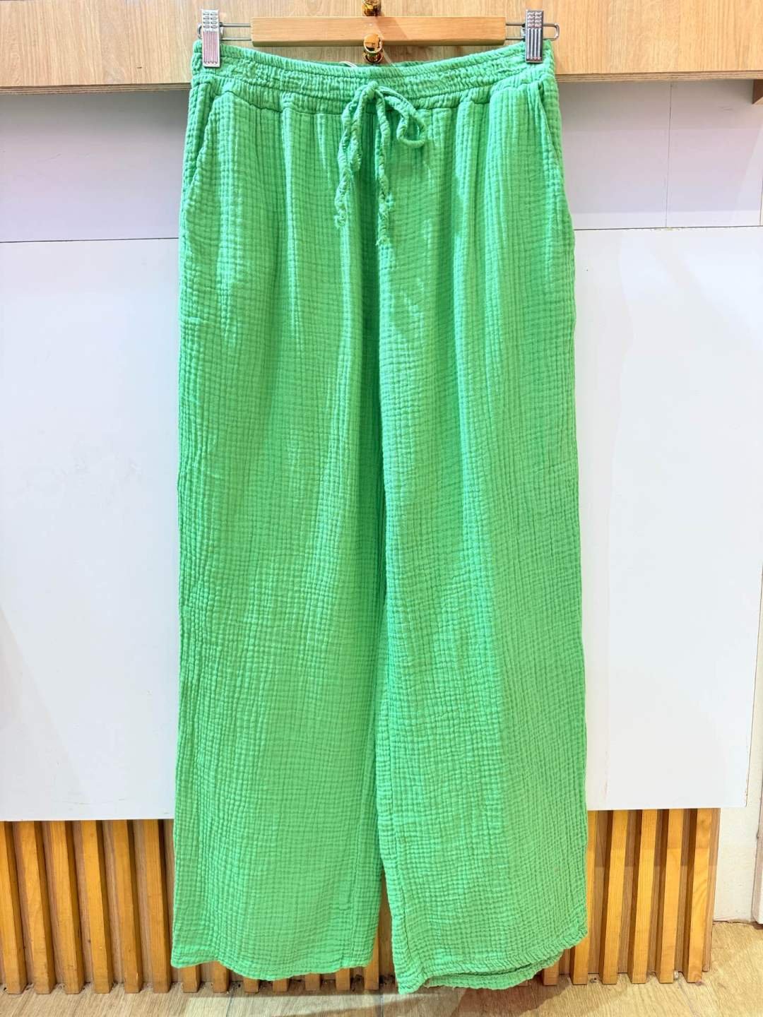Pantalon gaz de coton vert taille unique