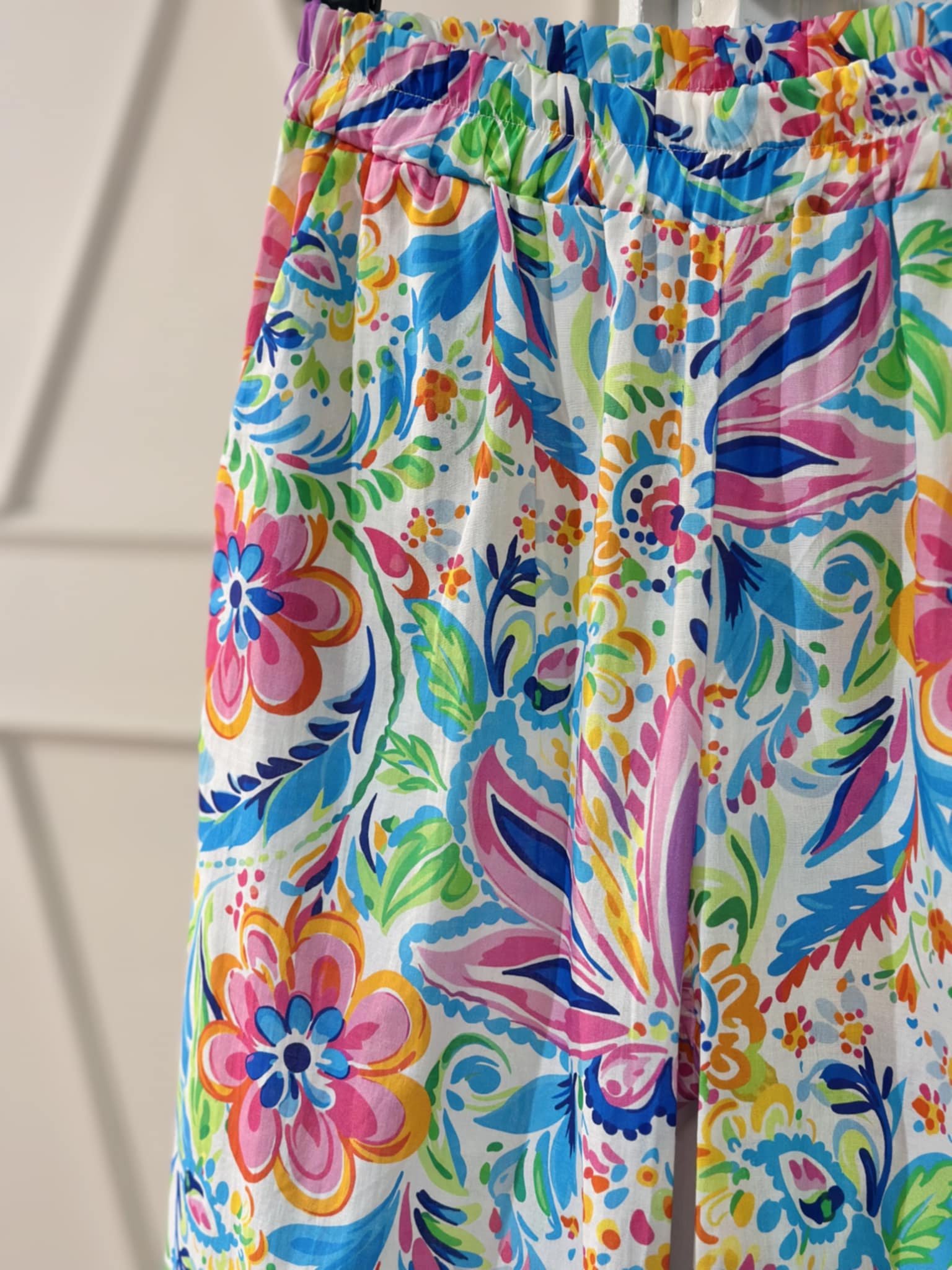 Pantalon large palazzo fleurs multicolores