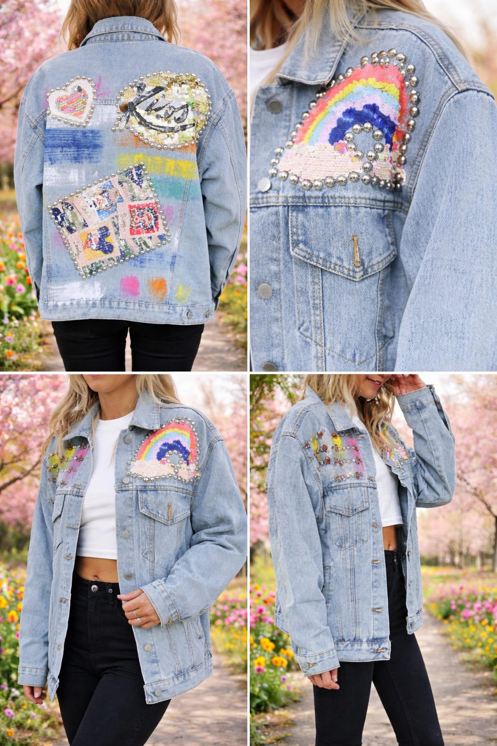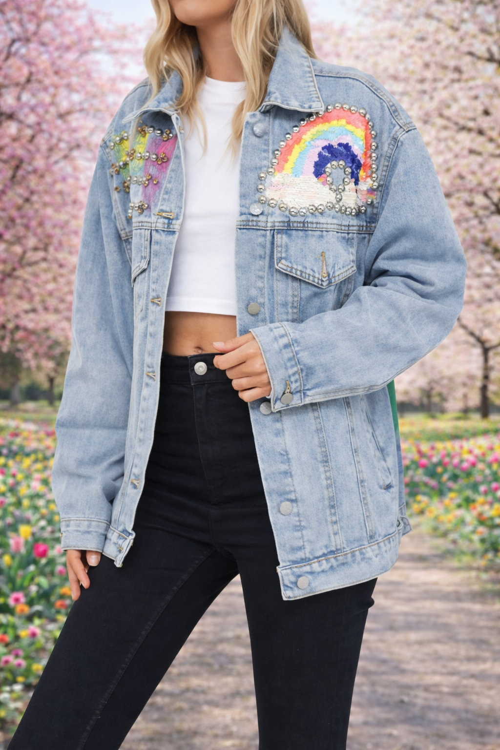 Veste en jeans arc en ciel strass
