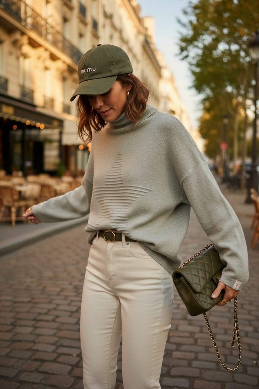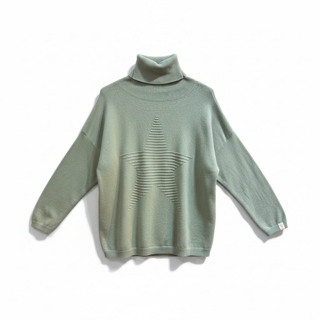 Pull April vintage col roulé étoile kaki clair