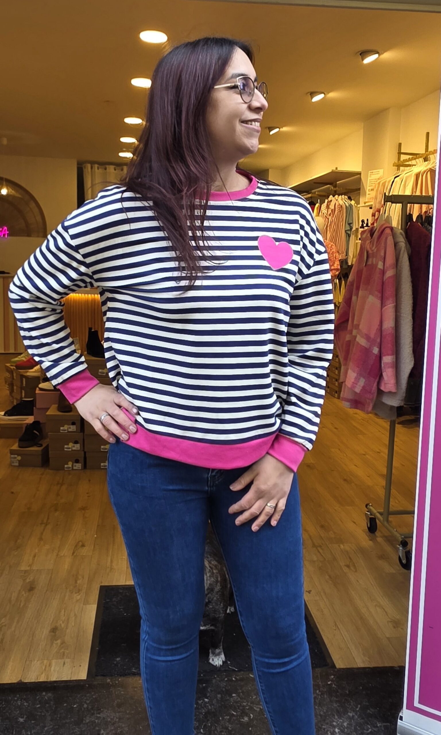 Pull fin April Vintage rayé marine coeur