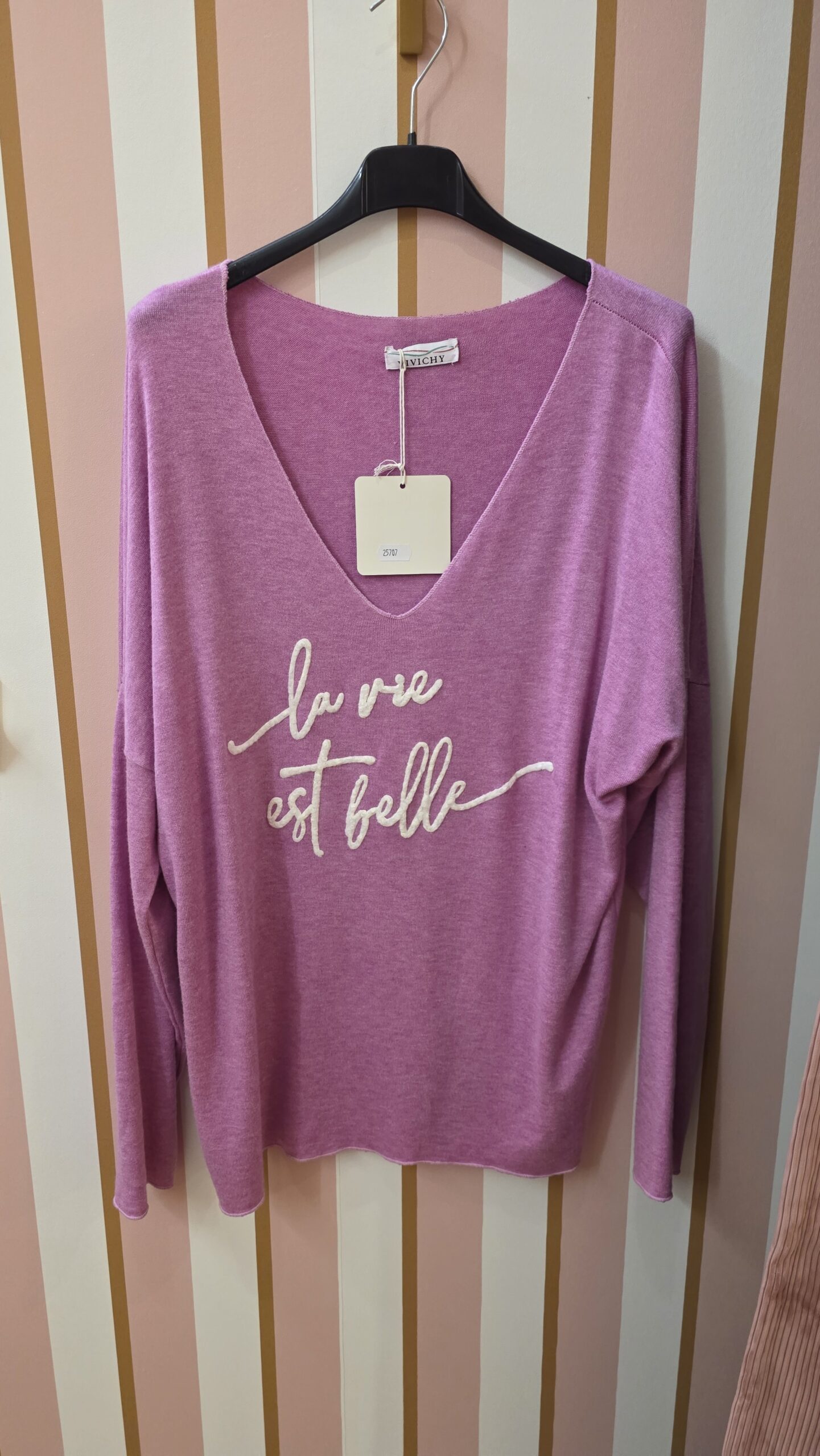 Pull fin la vie est belle rose