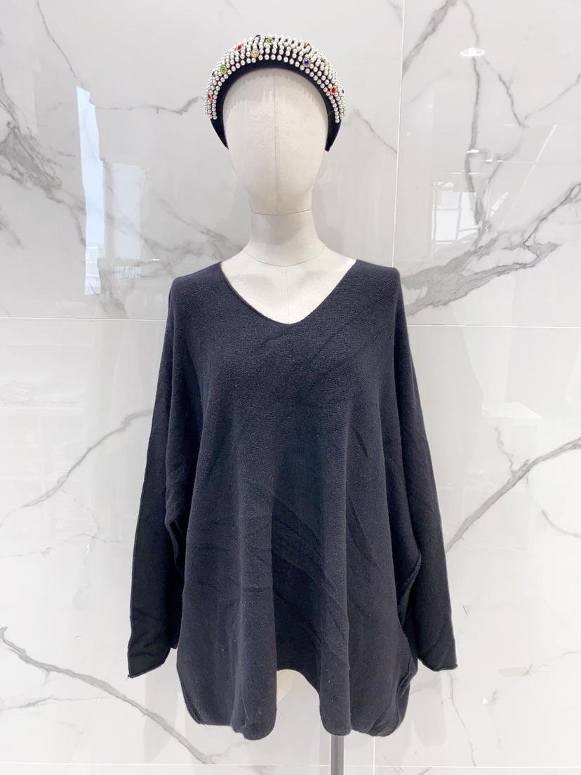 Pull grande taille col V noir