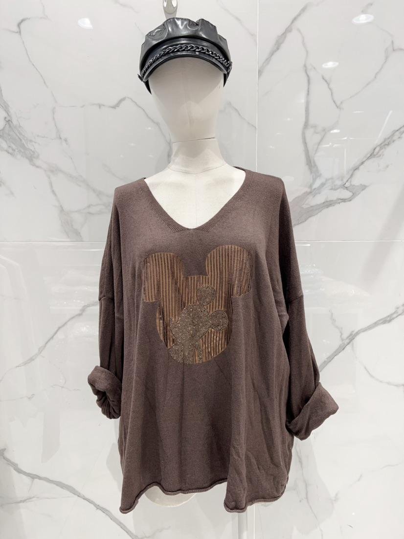 Pull grande taille Mickey doré et choco