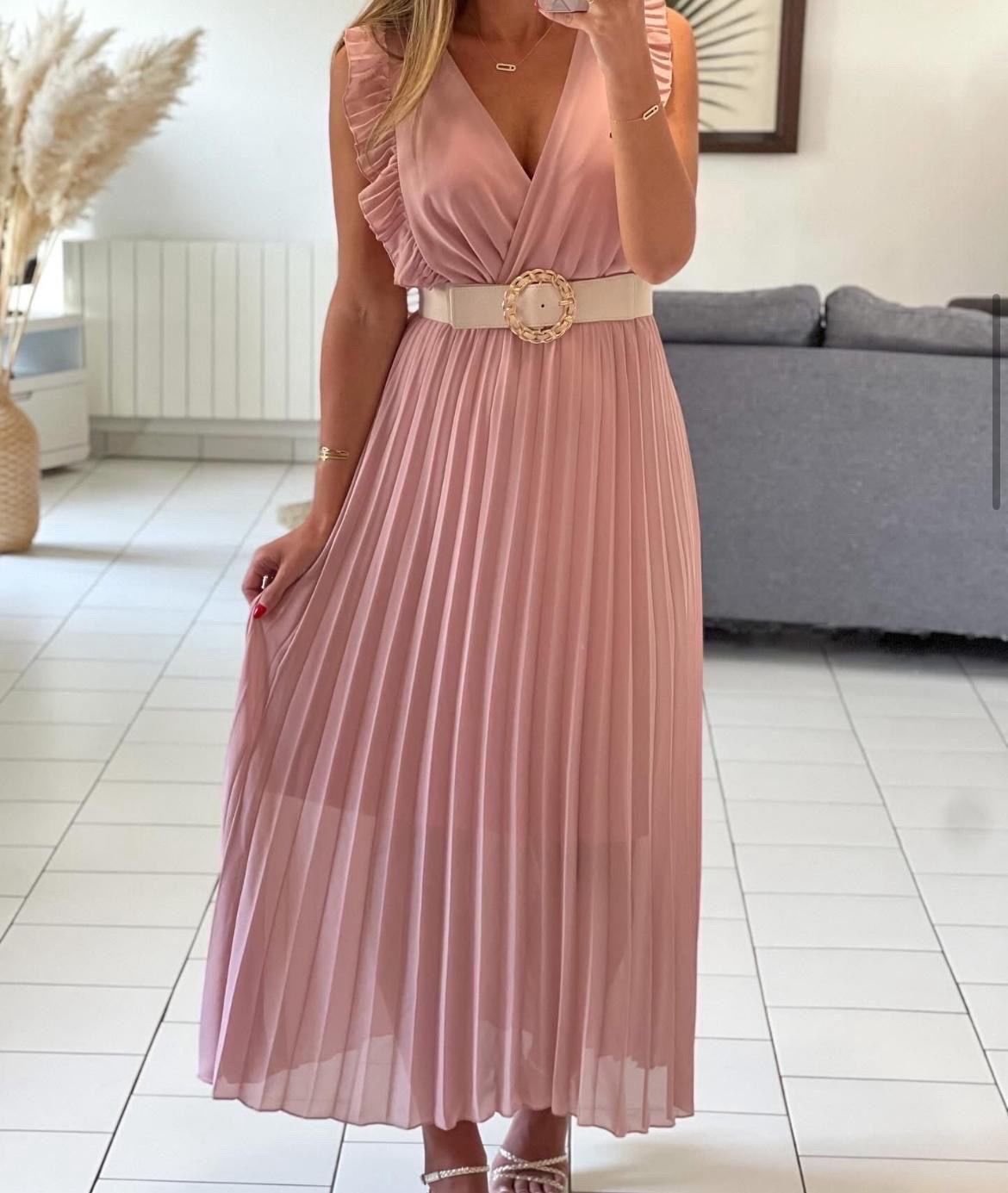 Robe cérémonie grande taille longue plissée rose clair froufrou
