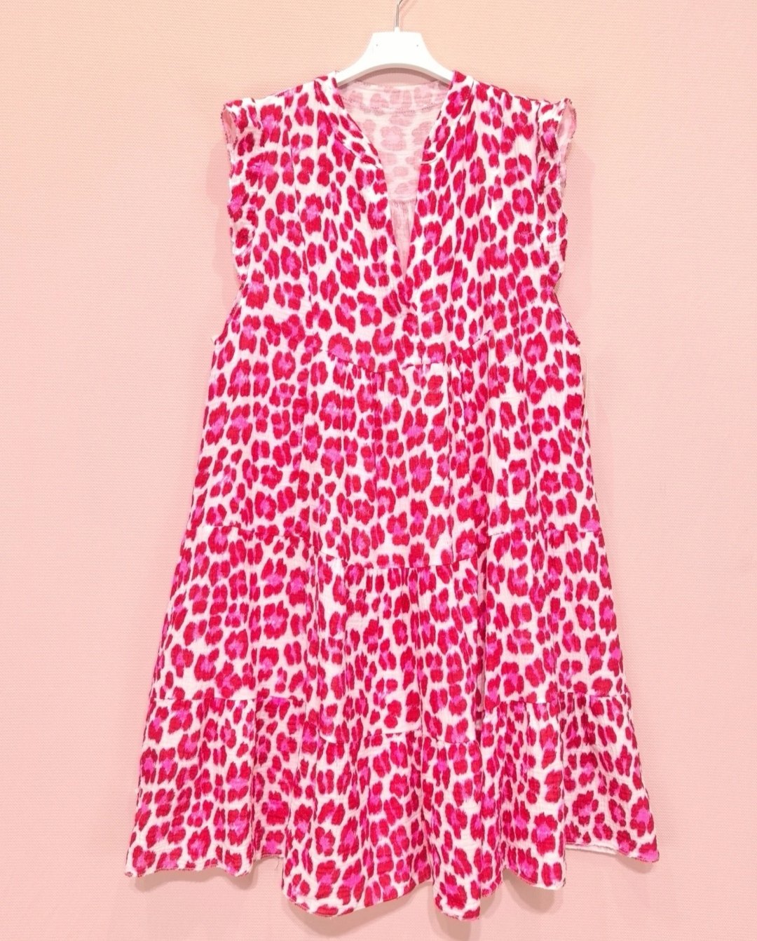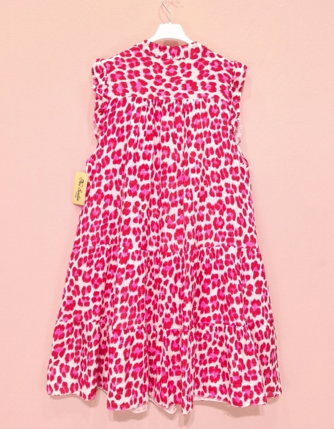 Robe midi gaze de coton léopard rouge et rose fluo
