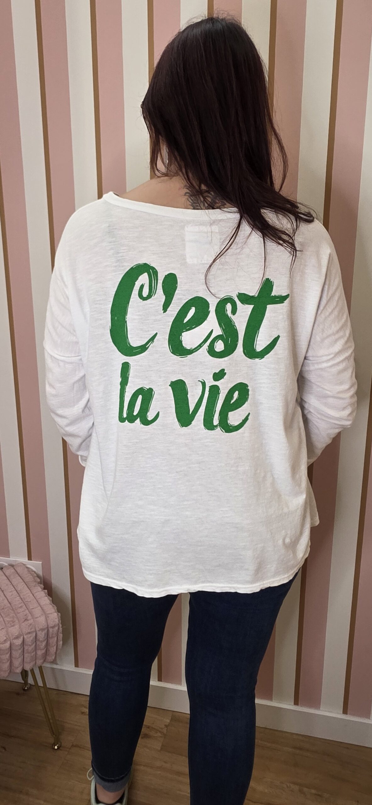 Tee-shirt April Vintage blanc et vert c’est la vie