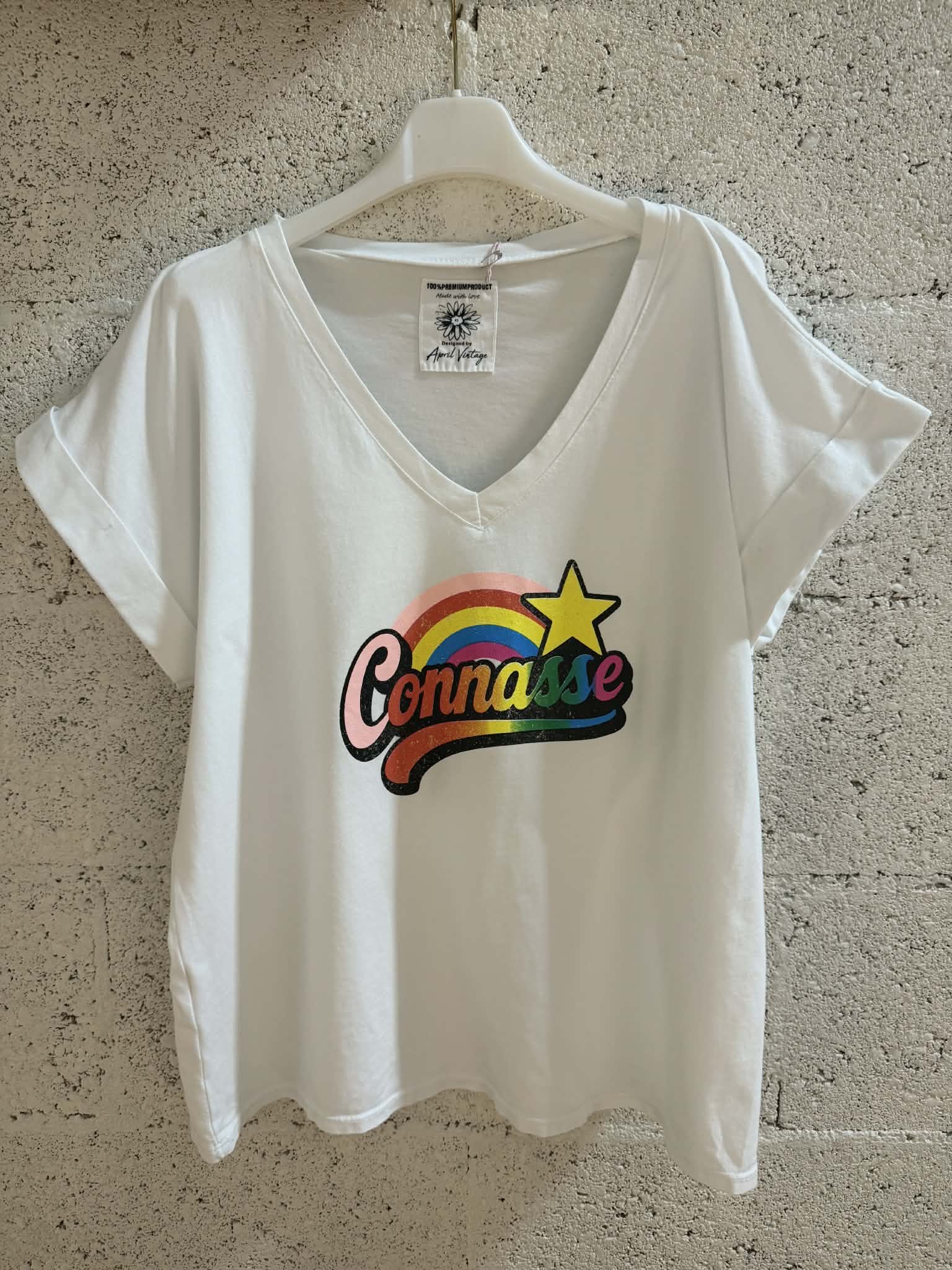 Tee-shirt April Vintage conasse blanc arc en ciel