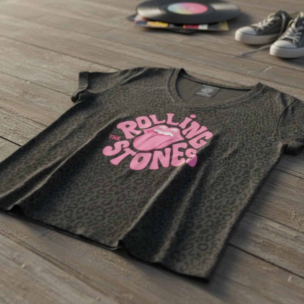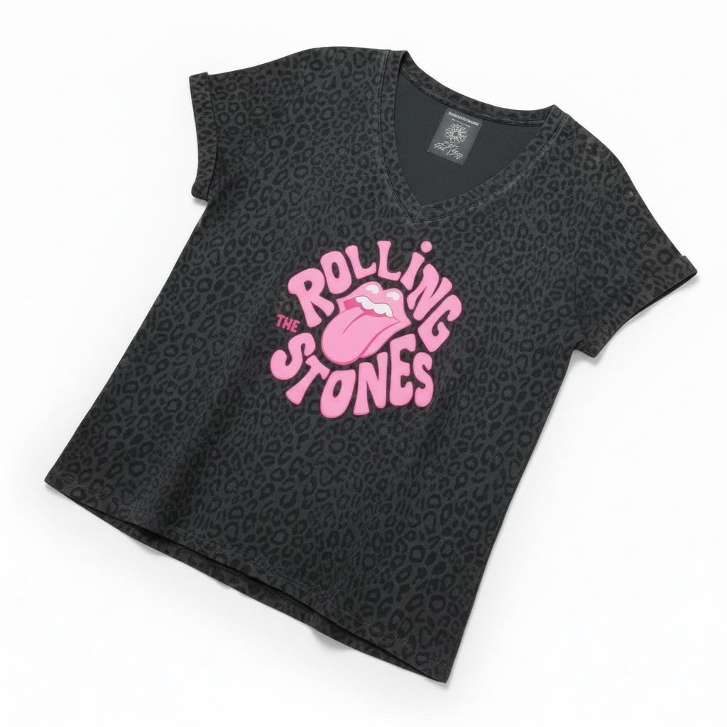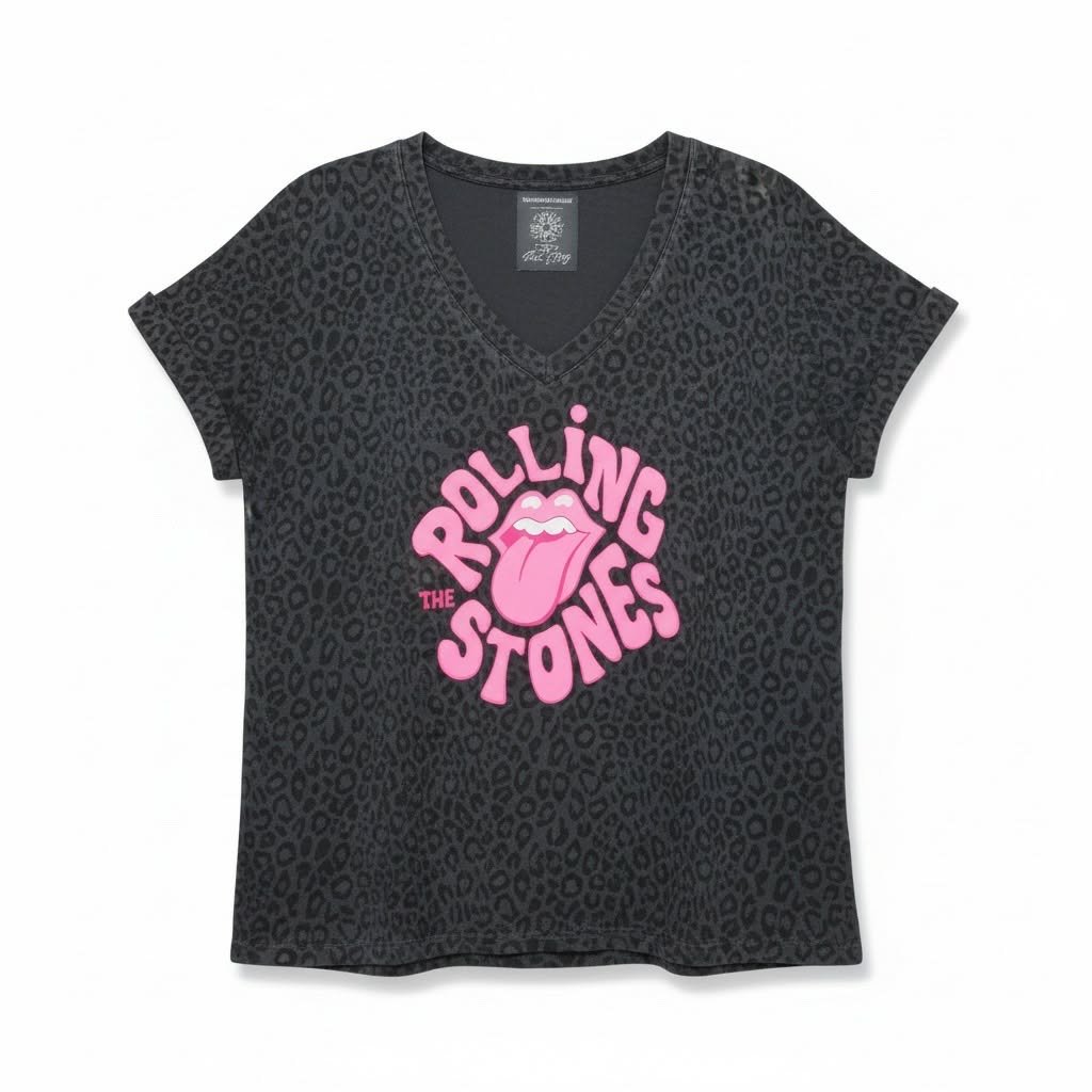 Tee-shirt April Vintage noir délavé léopard rolling stones