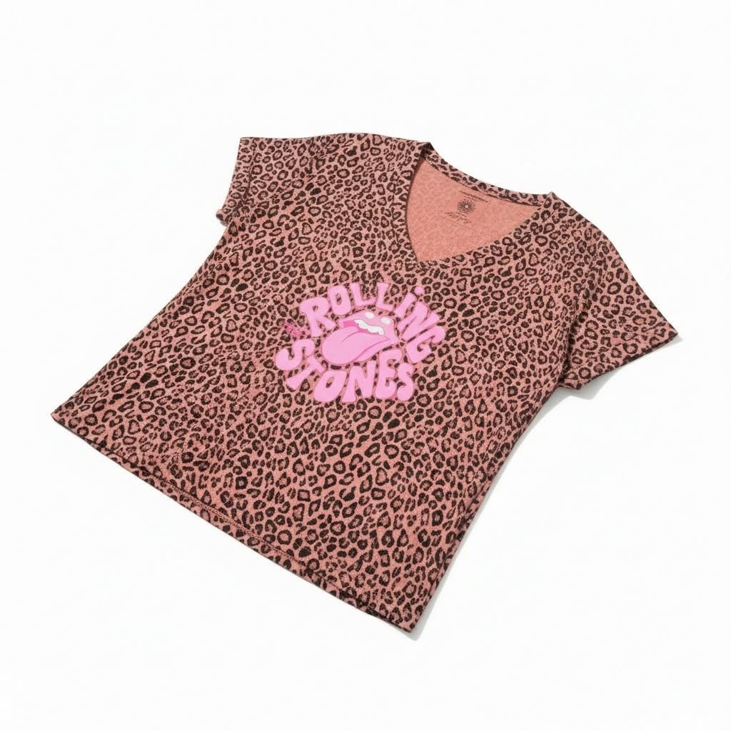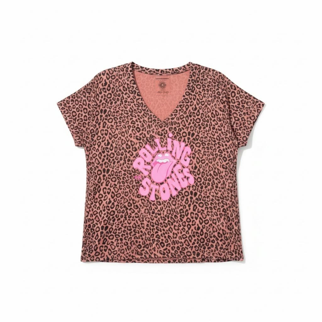 Tee-shirt April Vintage vieux rose léopard rolling stones