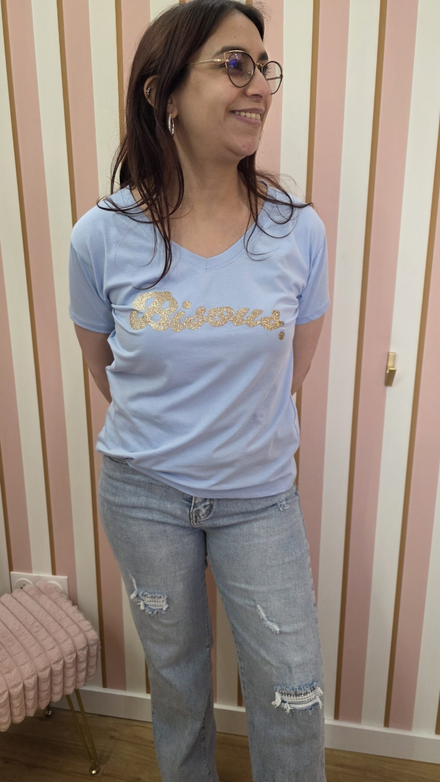 Tee-shirt bisous bleu et or