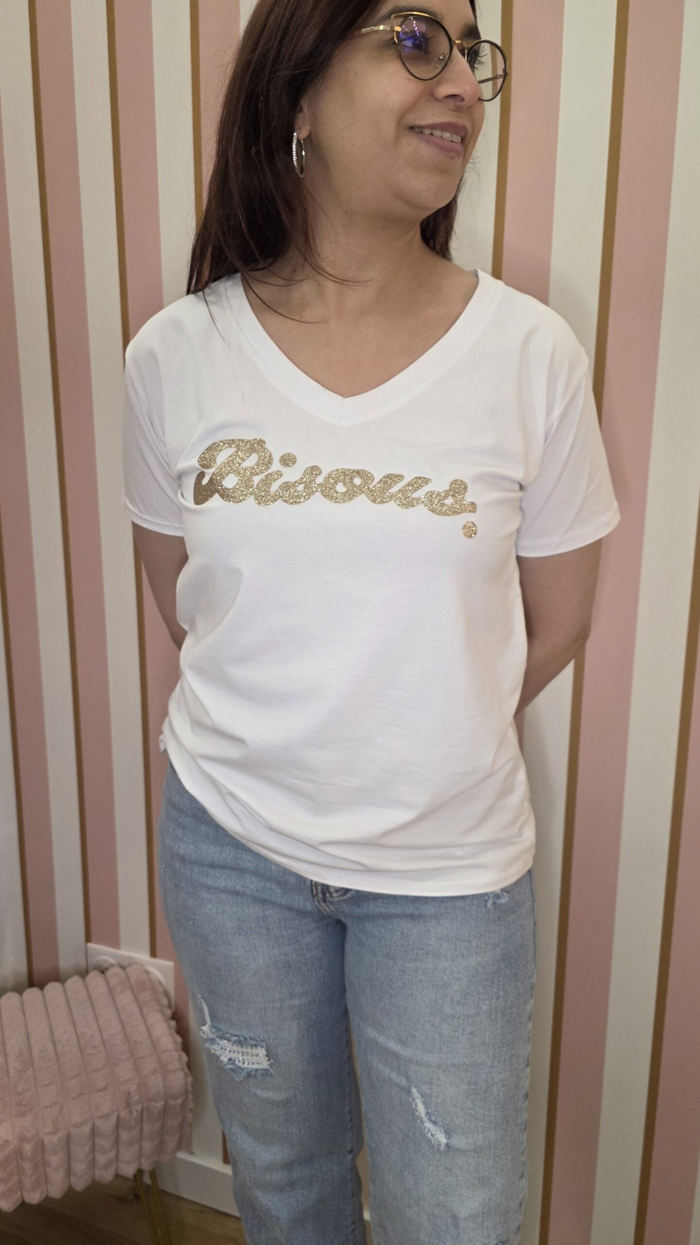 Tee-shirt bisous blanc et or belle taille